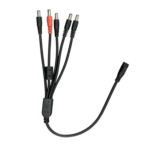 Il dispose d'une entrée d'alimentation standard mâle et de 5 sorties d'alimentation standard femelles. Il peut ainsi alimenter jusqu'à 5 caméras (ou autres appareils) connectées à sa sortie, en utilisant une seule alimentation connectée à son entrée.