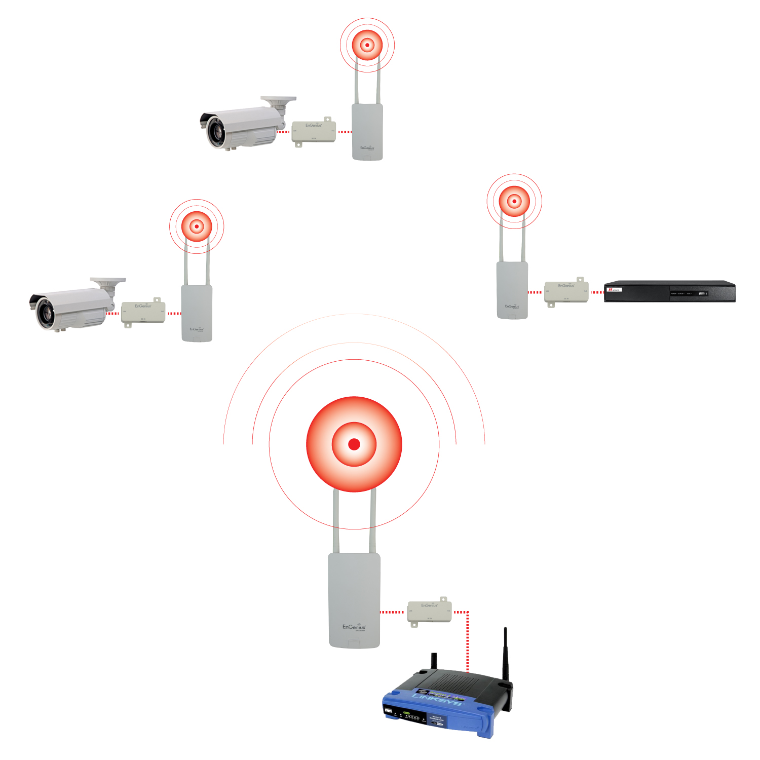 L'ENS202EXT est la solution idéale pour connecter sans fil des caméras et des enregistreurs IP, fonctionnant dans la bande de 2,4 GHz. Sa double antenne externe omnidirectionnelle de 5 dBi, la technologie MIMO (2 transmisores/2 récepteurs) et la puissance de transmission maximale de 26 dBm (configurable) vous permettent de relier des caméras à plusieurs kilomètres (la distance maximale dépend de l'environnement spécifique). L'antenne de 5 dBi de gain a un diagramme de rayonnement omnidirectionnel qui permet la connexion d'appareils dans un environnement de 360º.