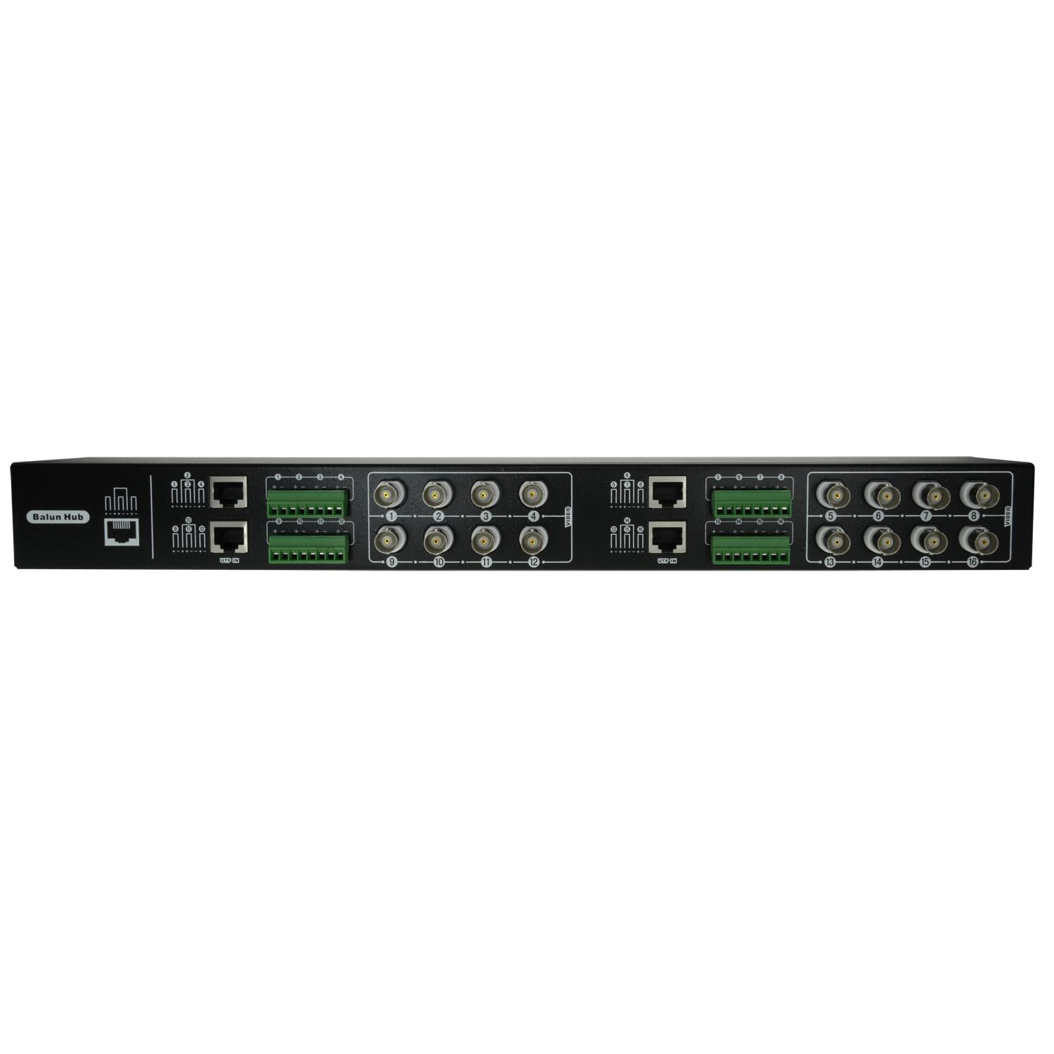 Émetteur-récepteur vidéo passif par paire torsadée de 16 canaux, optimisé pour la vidéo haute définition HDTVI / HDCVI / AHD / CVBS. Il peut fonctionner comme émetteur ou récepteur, et il permet de transmettre le signal de jusqu'à quatre caméras vidéo via un seul câble UTP.