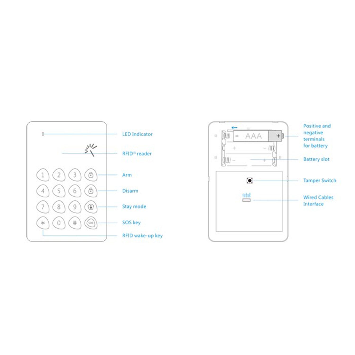 Vous pouvez placer ce clavier à la porte de votre maison ou de votre bureau et cacher le panneau d'alarme dans un endroit sûr. Ainsi, même si un intrus entre et sabote le clavier, la centrale d'alarme continuera à fonctionner et recevra les signaux des détecteurs, activera la sirène et enverra l'alerte à votre téléphone.