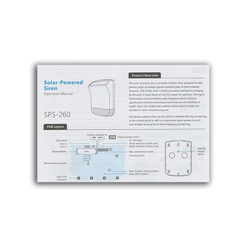 Sirène 110 dB adaptée à l'extérieur, alimentée par panneaux solaires, avec feu clignotant. Il communique sans fil avec la centrale d'alarme, et ainsi lorsqu'une intrusion ou un événement est détecté, en plus de faire retentir la sirène interne de la centrale, cette puissante sirène sonnera et s'allumera également.